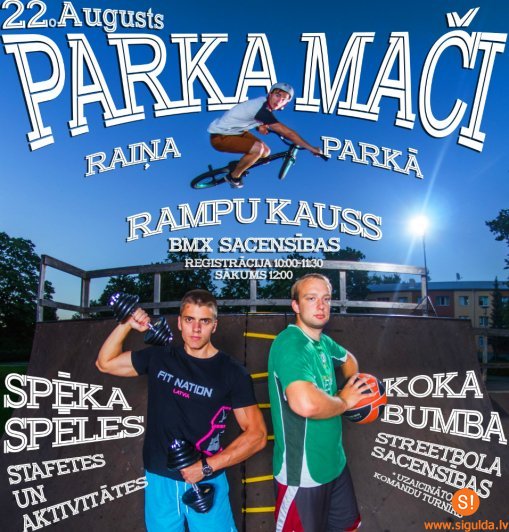Siguldas novada Jaunrades centrs sestdien, 22.augustā, plkst.12.00 aicina uz pasākumu „Parka mači”. Pasākuma apmeklētājiem būs iespēja iesaistīties jautrās, radošās un sportiskās aktivitātēs.