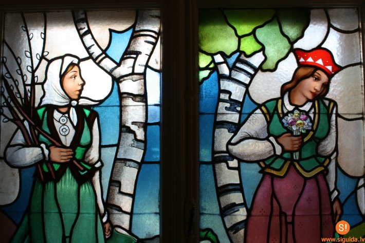 Niklāva Strunkes vitrāžas „Četri gadalaiki” Jaunās pils vestibila logos tika uzstādītas pils kompleksa pārbūves laikā 1934.-1937.gadā.