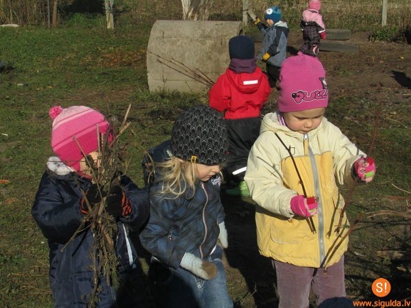 Saulainajā 12.oktobra rītā ceturtās grupas bērni devās uz tuvējo saimniecību „Sprigulīši”, lai piedāvātu savu palīdzību rudens darbos. Uz šo lauku sētu bērni bieži iet aplūkot dzīvniekus un mājputnus, pabarot tos, bet pavasaros iepazīties ar mazajiem kazlēniem, tītarēniem un cālēniem.