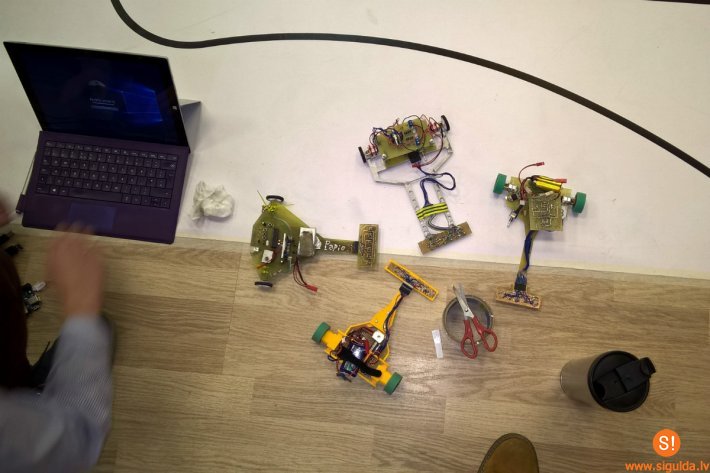 Siguldas novada Jaunrades centra Elektronikas un mehatronikas pulciņa dalībnieki piedalījās Transporta un sakaru institūta (TSI) organizētajā atklātajā Robotikas turnīrā 21.novembrī un izcīnīja pirmo un otro vietu līnijsekošanas disciplīnā jau otro gadu pēc kārtas.