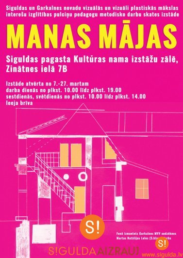 Siguldas un Garkalnes novadu izglītības iestāžu vizuālās un vizuāli plastiskās mākslas pulciņu un studiju skolotāju vizuālās un vizuāli plastiskās mākslas metodisko darbu izstāde – skate „Manas mājas” būs aplūkojamaSiguldas pagasta Kultūras namā līdz 27.martam.