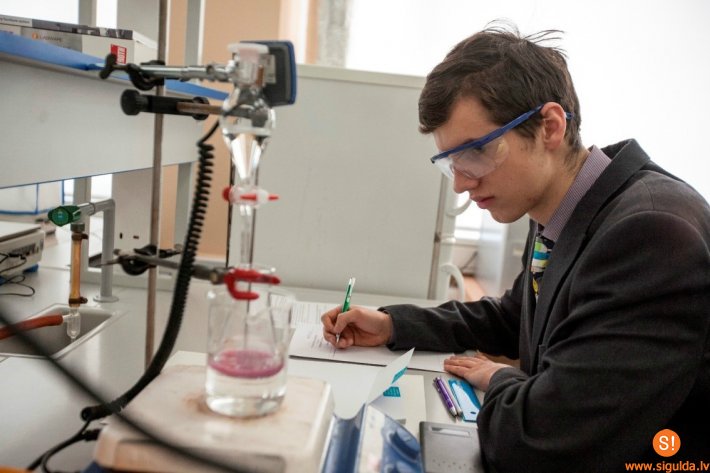 Pirmajā dienā skolēniem Dabaszinātņu mājā norisinājās teorētiskā kārta, no kuras 25 labākie no katras klašu grupas nākamajā dienā varēja spēkoties, pildot laboratorijas darbus. Divpadsmito klašu grupā startēja 40 skolēnu, viņu starpā siguldietis Valts Krūmiņš spēja parādīt ļoti labu sniegumu un izcīnīt III pakāpes diplomu, bronzas medaļu un balvas. No Siguldas 1.pamatskolas abām skolniecēm izdevās iekļūt otrajā kārtā, kurā Liene Beāte Arnicāne ieguva trešo vietu un Alise Anna Stīpniece – ieguva atzinību.
