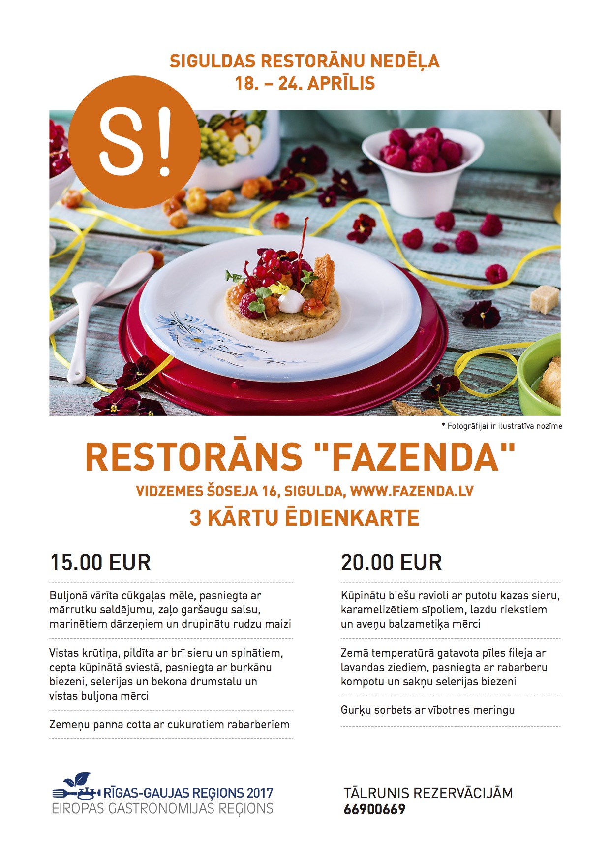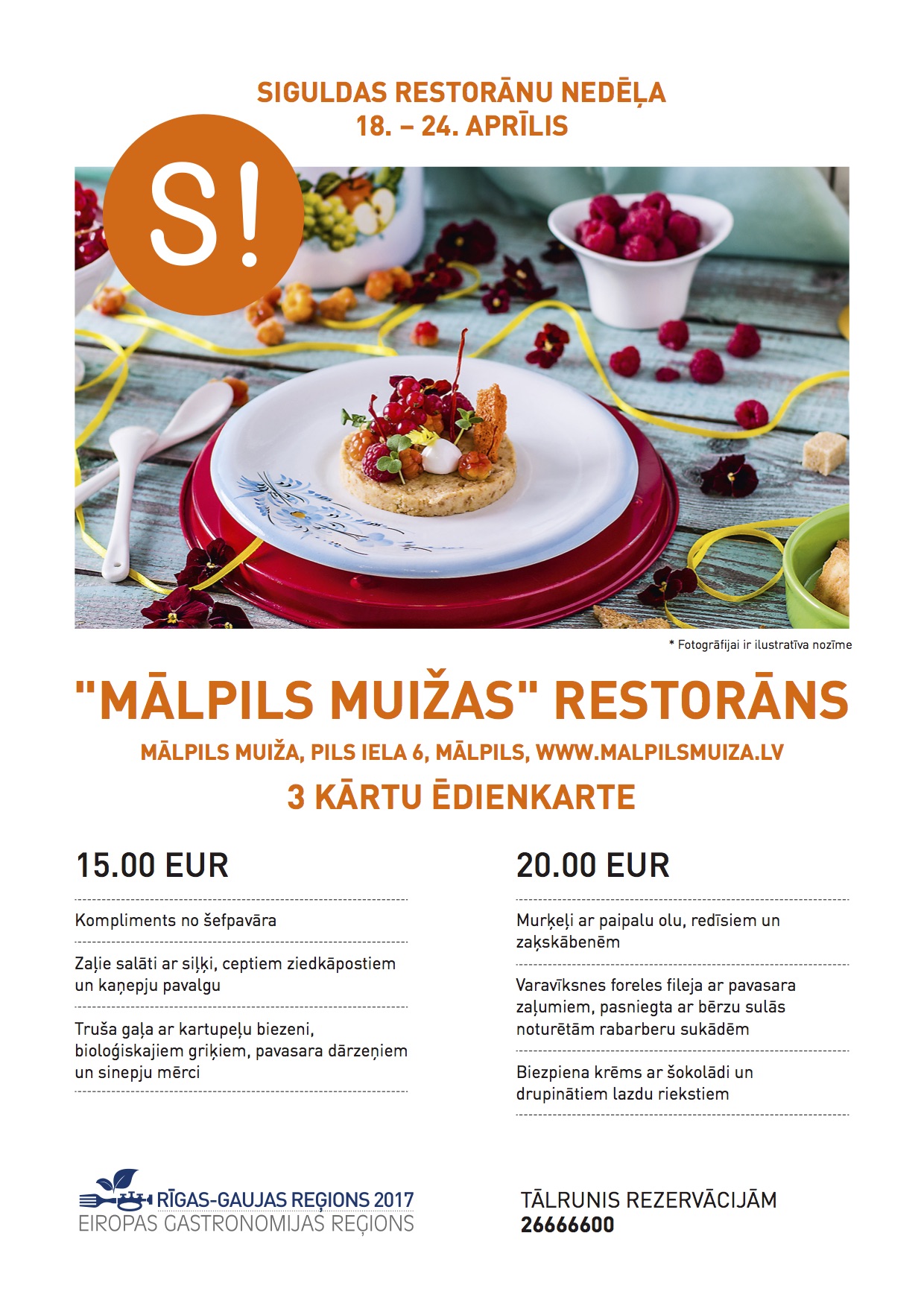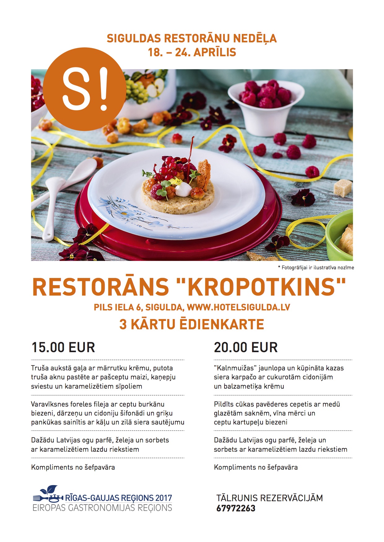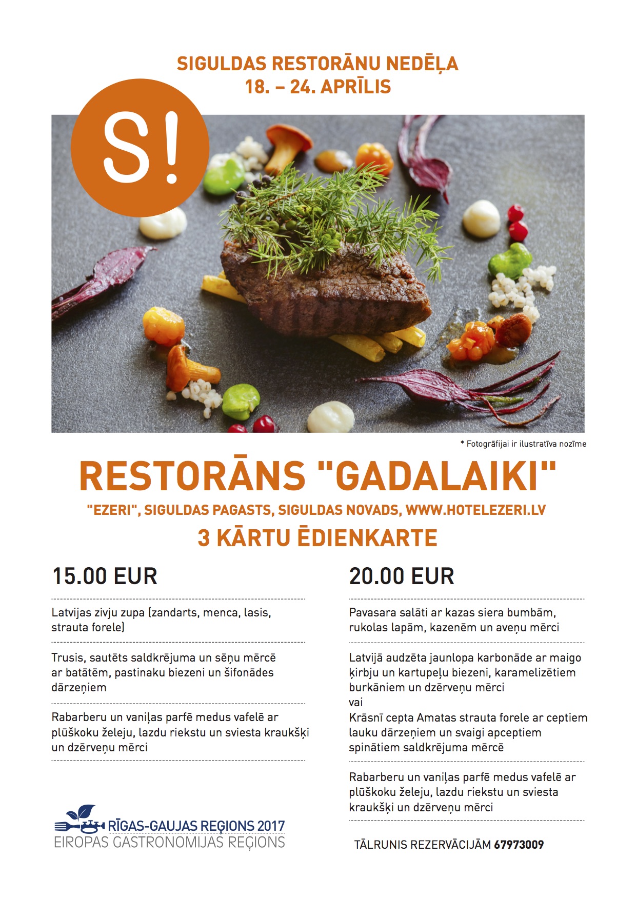Sagaidot 2017.gadu, kad Siguldā, Rīgā un Gaujas reģionā tiks īstenotas Eiropas Gastronomijas reģiona aktivitātes, no 18. līdz 24.aprīlim Siguldā un tās apkārtnē pirmo reizi tiek organizēta Siguldas Restorānu nedēļa.