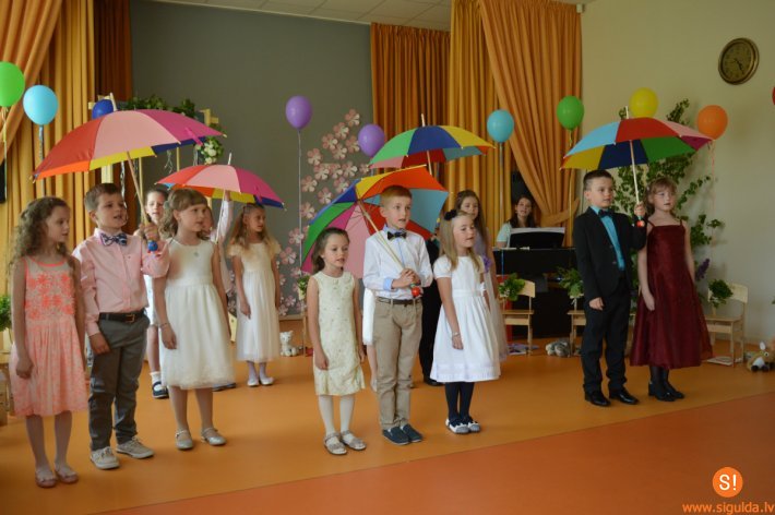 Jaunākie grupas draugi ar aktīvu priekšnesumu sveica nākamos skolniekus. Vecāki ar mīļiem vārdiem un laba vēlējumiem pateicās bērnudārza audzinātājām un pārējiem iestādes darbiniekiem par ieguldījumu un darbu, sagatavojot bērnus skolas gaitām.