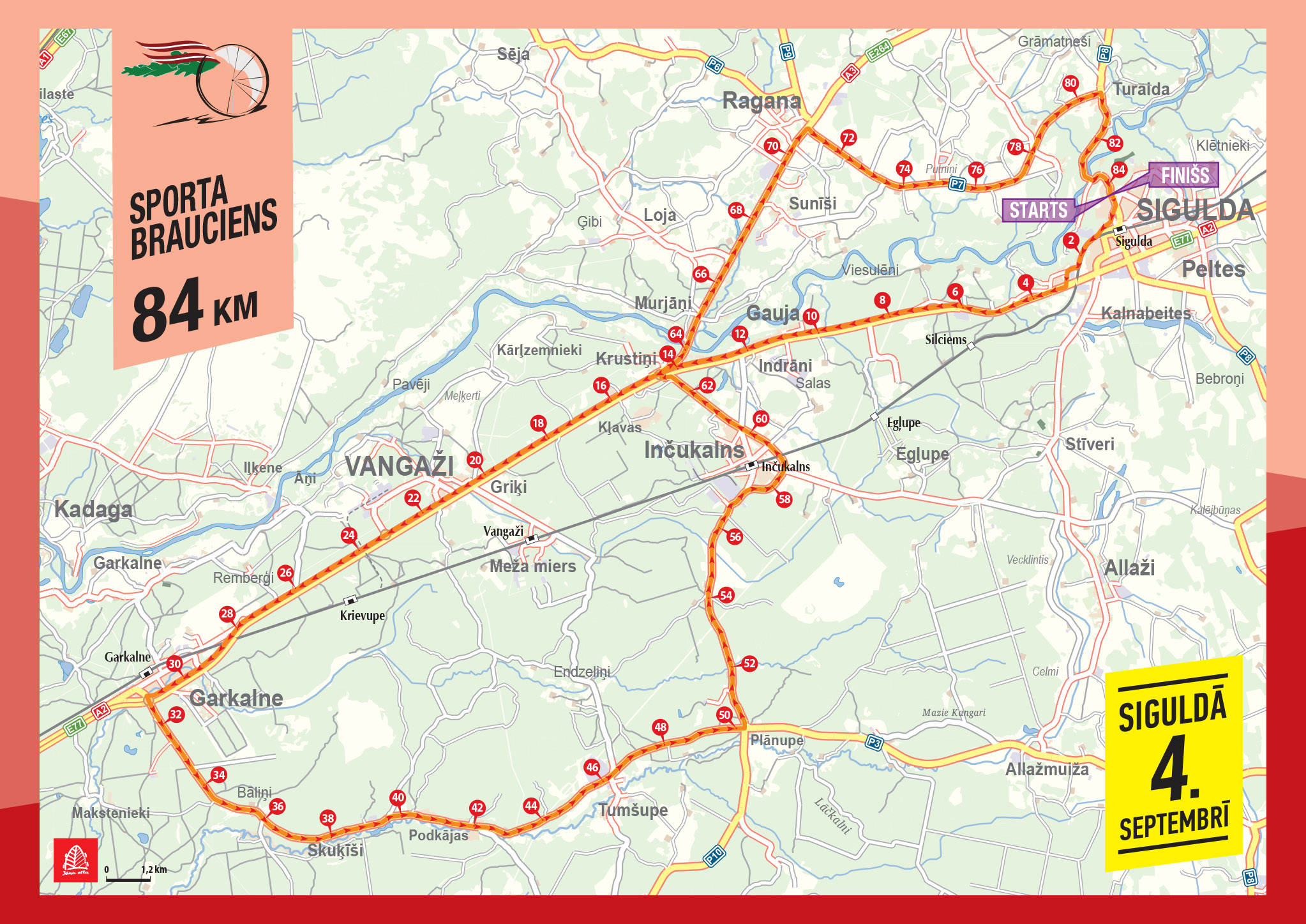 - Sporta distance, starts plkst.10.30: Sigulda (Raiņa iela – Pils iela – Šveices iela – Kalna iela – Vidzemes šoseja (A2)) – Sēnīte – Vangaži – Garkalne – Plānupe – Inčukalns – Sēnīte - Murjāņi – Ragana – Turaida (P7) – Sigulda (P8). Satiksmes ierobežojumi maršrutā no plkst.10.10 līdz 13.00.