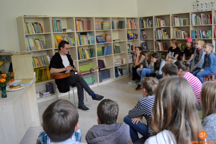 Tikšanās māksliniekam bija ar 5.un 6.klases skolēniem, kuri pirms tam rūpīgi iepazinās gan ar mūziķa, gan Knuta Skujenieka biogrāfiju un daiļradi. Runājām par dzeju, mūziku un dzīvi. Klausījāmies mākslinieka priekšnesumu un paši deklamējām dzeju.