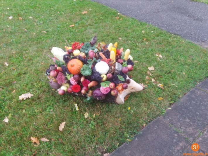 Svētku laikā Allažu pamatskolas skolēnus apciemoja milzu ezis, uz muguras nesot rudens ražu. Par to liels paldies 4.klases skolēnu Andra Jura un Sindijas vecākiem, kas ne pirmo reizi radoši iepriecināja skolēnus.