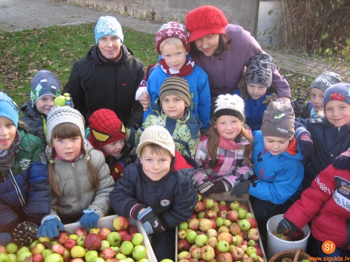 Savukārt „Meža mātes” grupas bērni devās ciemos pie pensionētas skolotājas Dainas palīdzēt novākt bagāto ābolu ražu. Bērniem čakli strādājot, drīz visas kastes, spaiņi un grozi bija pilni.