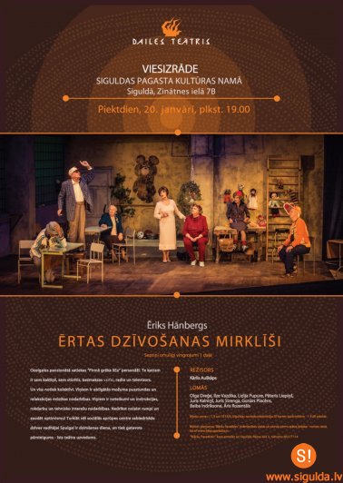 Piektdien, 20.janvārī, plkst.19.00 Siguldas pagasta Kultūras namā būs skatāma Dailes teātra viesizrāde „Ērtas dzīvošanas mirklīši” – septiņi omulīgi vingrojumi vienā cēlienā pēc Ērika Hānberga darbu motīviem.
