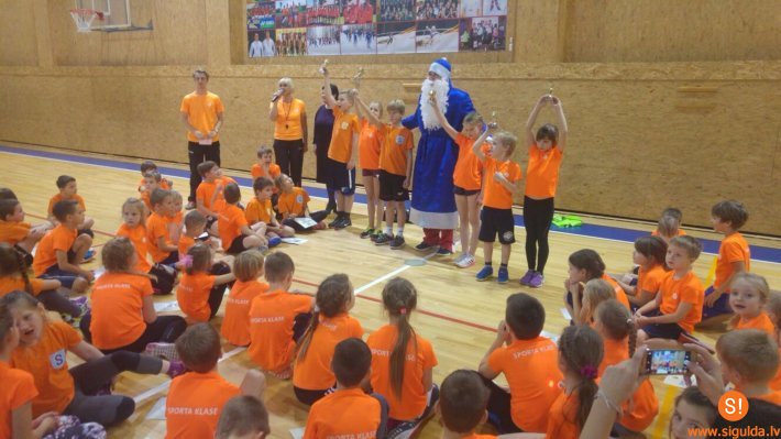 Visbeidzot bija klāt Ziemassvētku vecītis gan ar diplomiem, gan kausiem, gan dāvanām. Arī Sporta skolas direktoram A.Fridrihsonam bija jāskaita dzejolītis, sēžot vecītim uz ceļgala. Visi bērni saņēma atzinības par veiksmīgi nokārtotiem sporta testiem un dāvanas. Ziemassvētku vecīša kausu saņēma divi labākie sportisti no katras klases – Hanna Kronenberga un Kristers Teteris no 1.s, Zane Tanne un Kristers Kurmis no 2.s, Nikola Bunde un Emīls Radziņš no 3.s.