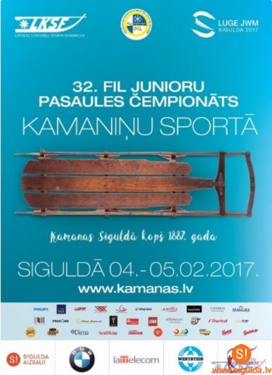 4. un 5.februārī Siguldā norisināsies Starptautiskās kamaniņu sporta federācijas rīkotais 32.Junioru Pasaules čempionāts kamaniņu sportā, kurā Latvijas junioru izlase cīnies ar spēcīgo Vācijas junioru izlasi, Austrijas, Itālijas, Krievijas, Kanādas, ASV, Polijas, Norvēģijas, Slovākijas, Čehijas, Ukrainas, Šveices, Ķīnas un Francijas atlētiem.