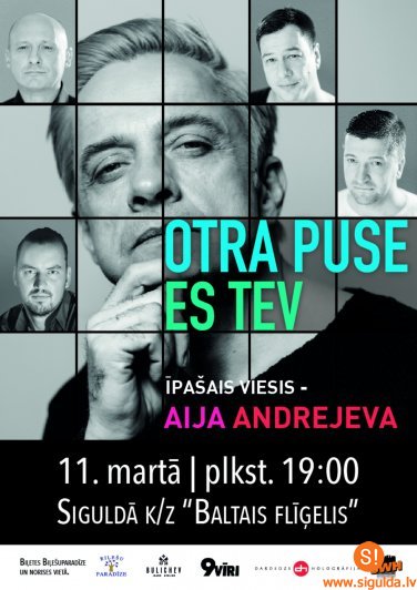 Sestdien, 11.martā, plkst.19.00 koncertzālē „Baltais Flīģelis” notiks grupas „Otra Puse” 25 gadu jubilejas koncerts „Es Tev” ar Aijas Andrejevas piedalīšanos.