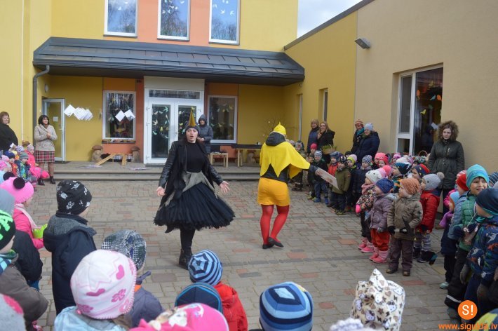 Izglītības iestādes bērni kopā ar Lieldienu zaķi, vistu un strazdu dziedāja dziesmas, minēja mīklas par pavasari un putniem. Katra grupiņa īpaši bija sagatavojusi informāciju par kādu no Latvijā pazīstamiem putniem, piemēram, dzeni, stārķi un pūci. Tāpat bērni viens otru iepazīstināja ar Lieldienu ticējumiem. Pēc dziedāšanas un rotaļām bērni mērojās spēkiem, ripinot krāsainās Lieldienu olas.