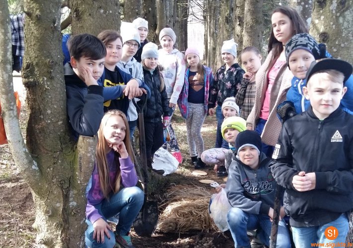 3.klases zēni skrūvēja dēļus un iesaistījās rakšanas darbos, savukārt meitenes piepildīja takas posmus ar čiekuriem, zīlēm, zariņiem akmentiņiem un citiem dabas materiāliem, kurus bērni bija sagādājuši jau iepriekš.