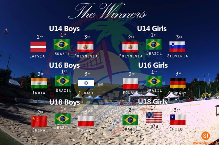 Latvijas komanda U–14 grupā ieguva otro vietu un kāpa uz goda pjedestāla, aiz sevis atstājot Ķīnu, Indiju un Franču Polinēziju, bet sīvā cīņā fināla spēlē piekāpjoties spēcīgajai Brazīlijas komandai.