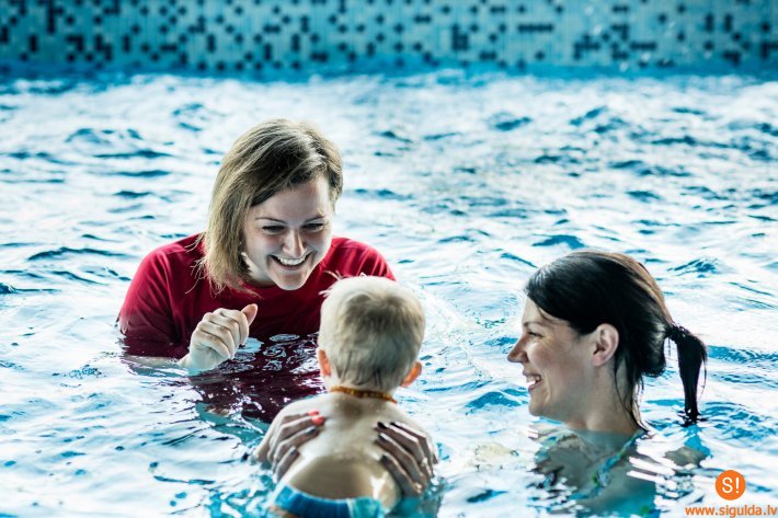 Savukārt mazuļiem no 6 mēnešu vecuma, katru pirmdienu plkst.11.00 un plkst.11.30 ir pieejamas peldināšanas nodarbības. Nodarbību ilgums ir 20 minūtes un tajās jāpiedalās kādam no mazuļa vecākiem. Vienas grupu nodarbības cena ir 7 eiro, ar Siguldas novada iedzīvotāju identifikācijas kartēm ir 10% atlaide.