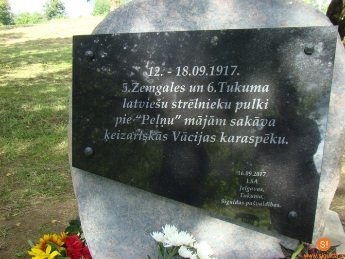 Par piemiņas zīmes pamatu kalpo Balvu novadā atrasts nošķelts granīta akmens ar piestiprinātu trapecveida melnu plāksni, kurā iekalts teksts: „12.-18.09.1917. 5.Zemgales un 6. Tukuma latviešu strēlnieku pulki pie “Peļņu” mājām sakāva ķeizariskās Vācijas karaspēku. 16.09.2017.”.