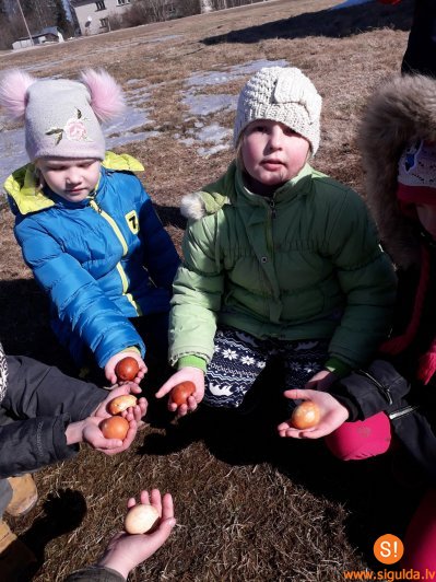 Rīta cēlienā tajā ar lielu aizrautību piedalījās pirmskolas un sākumskolas klašu skolēni un skolotāji. Ar rotaļām, dziesmām, latviešu tautasdziesmām un ticējumiem tika sagaidīts Lieldienu zaķis. Visi kopīgi piedalījās olu krāsošanā, dancināšanā, ripināšanā un olu stipruma pārbaudē. Turpinājumā darbošanos ap ugunskuru un olu krāsošanu veica lielāko klašu skolēni. Katram bija iespēja pagatavot savu īpašo Lieldienu olu, ar kuru varēja sacensties skaistumā un izturībā. Informāciju par Lieldienu tradīcijām un svinēšanu bērni izmantos svinot Lieldienas savās ģimenēs.