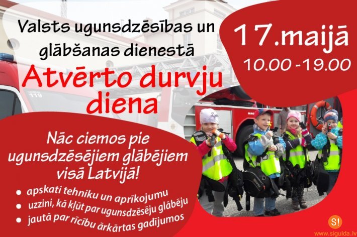 Atzīmējot Ugunsdzēsēju un glābēju dienu un ugunsdzēsības Latvijā 153.gadadienu, Valsts ugunsdzēsības un glābšanas dienests jau septīto gadu pēc kārtas 17.maijā rīkos atvērto durvju dienu.