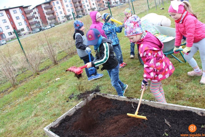 Pēc tam visi gāja ārā, lai uzirdinātu zemi mazdārziņos, iesētu zirņus un katra grupa Rūķa darbnīcā iesēja arī ķirbjus. Arī rotaļlietu kastes laukumos tika pamatīgi iztīrītas un sakārtotas.
