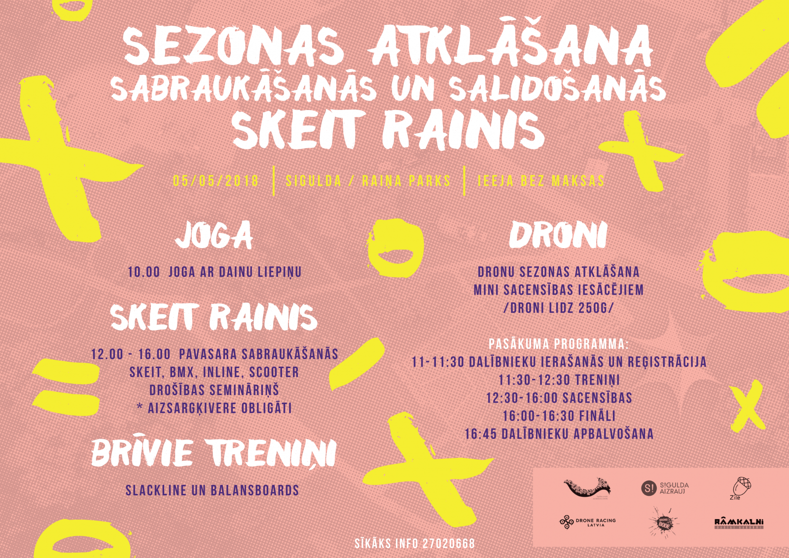 Savukārt plkst.12.00–16.00 notiks pavasara sabraukāšanās Skeit, BMX, Inline, Scooter disciplīnās. Bet Kristaps Maļinovskis šajā laikā vadīs visiem braucējiem mazo drošības instruktāžu un sacensības.
