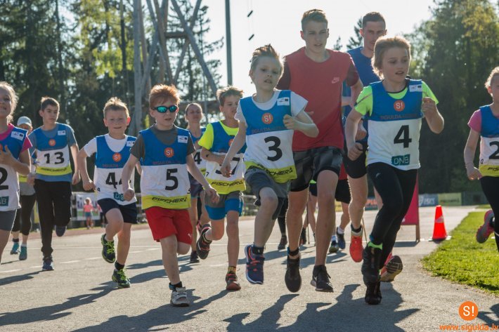 Pirmajā sacensību posmā dalībniekiem bija kopējais starts ar kontrollaiku. SV-6 grupu dalībniekiem bija jāskrien 10 minūtes pa 200 metrus garo sporta laukuma apli, SV-8 grupu dalībniekiem bija jāskrien 15 minūtes pa 200 metrus garo sporta laukuma apli, SV-10, SV-12, SV-14 grupām bija jāskrien 30 minūtes pa divu kilometru apli sporta laukumā, asfaltētajā trases daļā un mežā. SV-16 grupām un vecākiem dalībniekiem bija jāskrien 60 minūtes divu kilometru aplis pa sporta laukumu, asfaltēto trases daļu un meža takām. Nūjotājiem SV-Open grupā bija jānūjo 60 minūtes divu kilometru aplis. Skaitīti tika pilnie noskrietie un nonūjotie apļi.