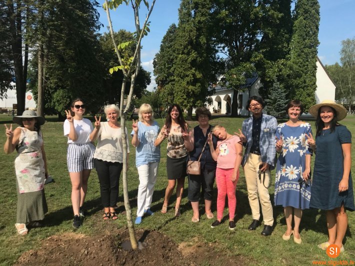17.augustā ar Siguldas novada iedzīvotājiem tikās miera vēstnesis un vides aktīvists Judži Mijata (Yuji Miyata) no Japānas, kurš šovasar kājām devies 600 kilometru garā ceļā no Tallinas līdz Viļņai, svinot Baltijas valstu simtgadi. Vizītes laikā miera vēstnesis tikās ar Siguldas novada jauniešiem un novadniekiem, kuri 1989.gadā piedalījušies „Baltijas ceļā”. Viesojoties Siguldā, Judži Mijata kopā ar jauniešu iniciatīva centra „Mērķis” vadītāju Katrīnu Leitāni un citiem novadniekiem iestādīja valrieksta koku Siguldas pils kompleksā.