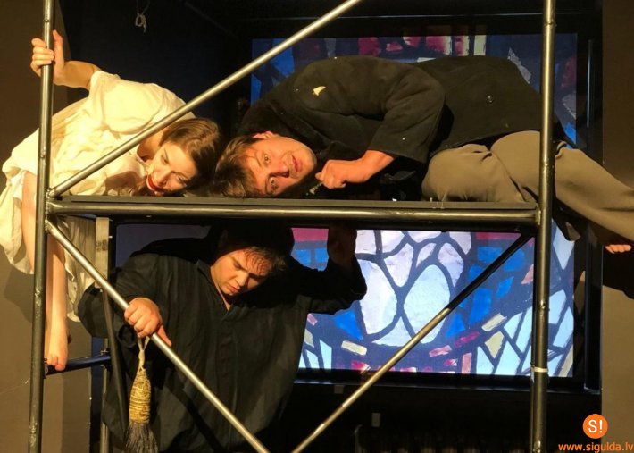 Skolēnus pie teātra sagaidīja Siguldas pilsētas vidusskolas jaunā mācību priekšmeta „Drāma” pasniedzējs Edgars Niklasons, kurš arī ir jauniešu redzētās izrādes režisors. Edgars Niklasons iestudē lugu „Noziegums vai sods”, kas ir veidota pēc krievu rakstnieka Fjodora Dostojevska tāda paša nosaukuma romāna motīviem. Izrāde ir bez vārdiem, viss tiek parādīts tikai ar kustību, masku, dažādu priekšmetu palīdzību