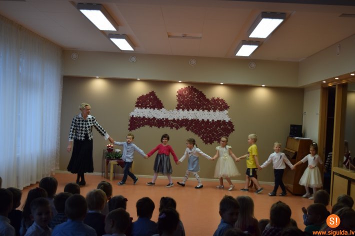 Pirmssvētku piektdienā visu grupu bērni kopā ar skolotājām skatījās animācijas filmu „Neparastie rīdzinieki”, kā arī video par to, kā izskatās brīvības pieminekļa iekšienē. Pēc tam bērni kopā ar skolotājām devās ārā, lai no svecītēm veidotu latviešu rakstu zīmju fragmentus. Pēcpusdienā svecītes tika iedegtas un priecēja gan bērnus, gan vecākus. Bērnudārza svētku noformējuma radīšanā piedalījās darbinieki, kā arī bērni un viņu ģimenes, veidojot auseklīšu karti ar saviem vārdiem. Savukārt 22.novembra rītā bērnudārzā norisinājās svinīgais Latvijas simtgades pasākums, kura mērķis bija veidot piederības izjūtu Latvijai un savam bērnudārzam.