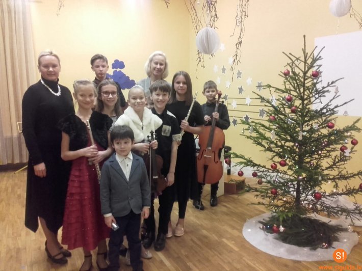 Piedāvājot interesantu koncertprogrammu, jaunie mūziķi – pianisti, vijolnieki, čellisti un flautisti, skolotājas D.Ulases un koncertmeistares D.Dzelvītes vadībā, koncertā atskaņoja gan pazīstamas klasiskās mūzikas, gan populāras Ziemassvētku melodijas. Pasākuma izskaņā stīgu un flautu instrumentu ansamblis uzbūra jauku Ziemassvētku noskaņu mūzikas ainu.