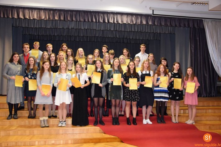 21.decembrī Siguldas Valsts ģimnāzijas aktu zālē pulcējās skolēni, klašu audzinātāji un skolas administrācija, lai svinīgi izsniegtu un saņemtu zelta un sudraba liecības, kā arī godinātu olimpiāžu laureātus. 2018./2019.mācību gada pirmajā pusgadā kopumā 143 izglītojamie ieguvuši labus, teicamus un izcilus mācību sasniegumu vērtējumus. Īpašu uzslavu pelnījusi 9.a klases skolniece Agnese Zaperecka, kurai zemākais vērtējums liecībā ir 9 balles. Siguldas Valsts ģimnāzija priecājas un ļoti lepojas ar savu skolēnu augstajiem sasniegumiem.