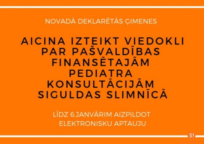 Lai noskaidrotu iedzīvotāju viedokli par pašvaldības finansētajām pediatra konsultācijām un to nepieciešamību arī turpmāk, aicinām aizpildīt elektronisku aptauju līdz 6.janvārim šeit.