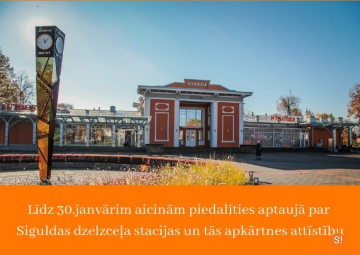 Turpinot darbu pie Siguldas identitāti veidojošā tematiskā plānojuma izstrādes un pamatojoties uz Siguldas novada pašvaldībā iesniegtajiem ierosinājumiem, aicinām atbildēt uz vairākiem jautājumiem par dzelzceļa stacijas un tās apkārtnes attīstību, aizpildot elektronisku aptauju līdz 30.janvārim šeit.