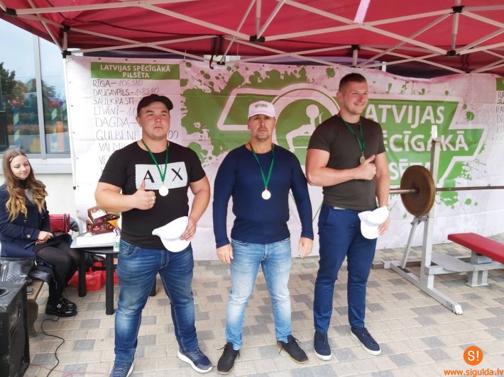 Vīriešu konkurencē 1. vietu ieguva Armands Naglāzs, kurš 50 kilogramus smagu stieni uzspieda 112 reizes un pilsētas summai pievienoja 5600 kilogramus. 2. vietā ar uzspiestām 100 reizēm ierindojās Nauris Vanags, bet 3. vietā – Jevgēnijs Gecko ar uzspiestām 90 reizēm.