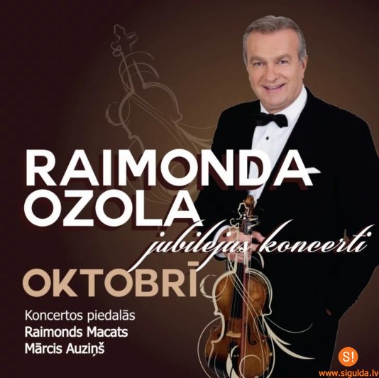 Sestdien, 19. oktobrī, plkst. 19.00 kultūras centrā “Siguldas devons” ikviens aicināts uz Latvijā pazīstamā mūziķa, Latvijas Nacionālā simfoniskā orķestra pirmo vijoļu grupas koncertmeistara Raimonda Ozola jubilejas koncertu, kurā R. Ozols ar draugiem Mārci Auziņu (ģitāra), un Raimondu Macatu (čells, taustiņinstrumenti un mutes harmonikas) piedāvās klausītājiem komponistu N. Paganīni un A. Piazollu skaņdarbus, kā arī pasaulē zināmu kompozīciju kaverversijas.