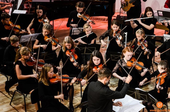 Koncertu ievadīja spilgts un aizraujošs sitaminstrumentālistu ansambļa priekšnesums. Koncertā izskanēja gan latviešu tautasdziesmas apdare akordeonam solo, gan dažādu tautu autoru klasiski un mūsdienīgi ansambļi – klavieru duets, klavieru trio, metāla pūšamo instrumentu trio, gan arī vairāki lielāku kolektīvu priekšnesumi. Publiku sajūsmināja “Baltā flīģeļa” bigbends.