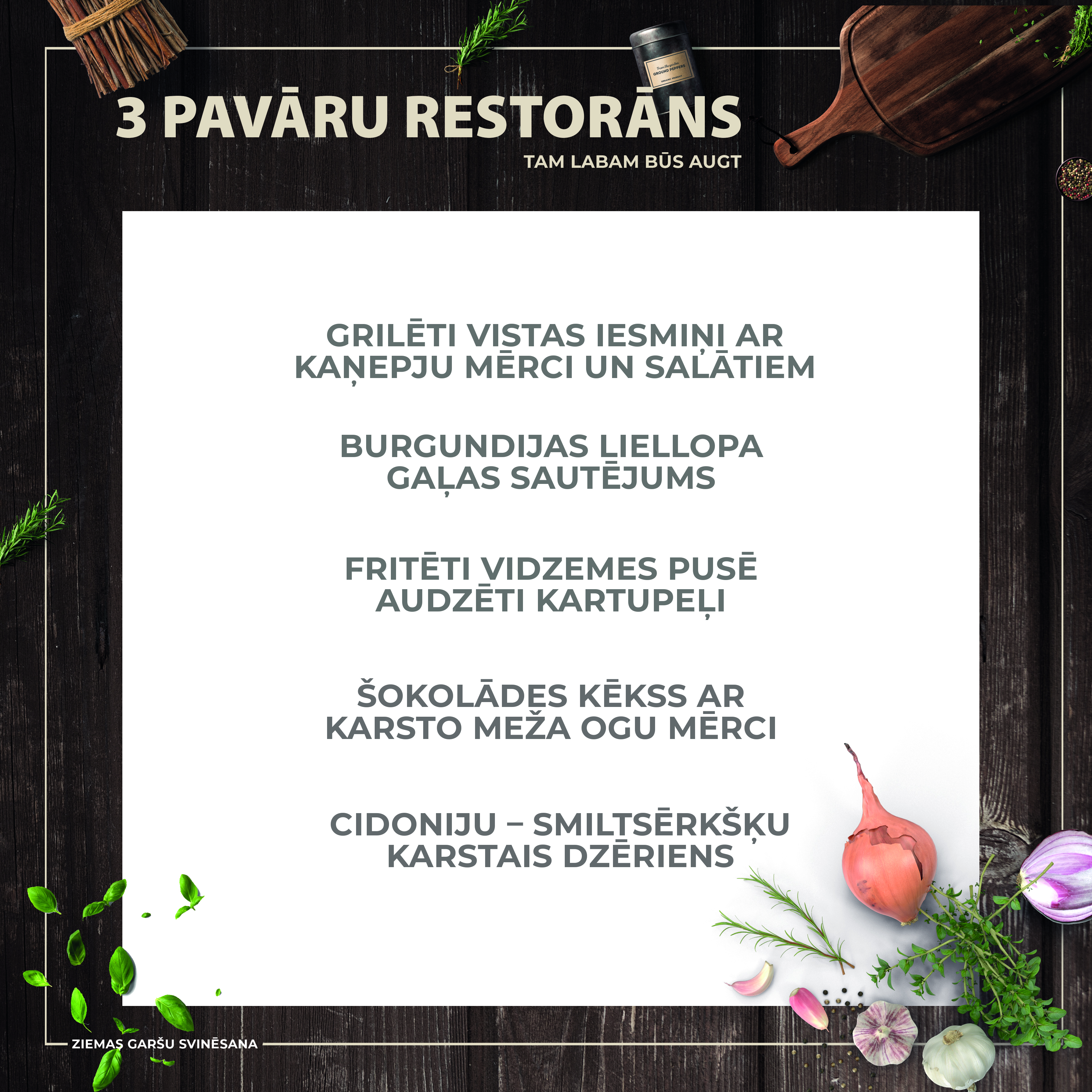 Jāatzīmē, ka ar “Ziemas garšu svinēšanu” tiks iedzīvināta Siguldas novada zaļā stratēģija, kuras pamatā ir videi draudzīgāka saimniekošana un pārdomātas izvēles. Tādējādi gastronomijas festivālā ēdinātāji piedalīsies, izmantojot tikai videi draudzīgus, biodegradējamos, papīra vai depozītraukus.