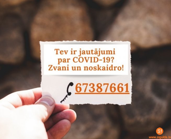 Ņemot vērā, ka tuvojas skolēnu brīvlaiks (no 16. līdz 23. martam), Siguldas novada pašvaldības vadība un pašvaldības izglītības iestāžu vadītāji aicina vecākus izvērtēt nepieciešamību ceļot uz ārvalstīm, kā arī sadarboties ar izglītības iestādēm un rīkoties atbildīgi, atgriežoties bērnudārzā vai skolā.