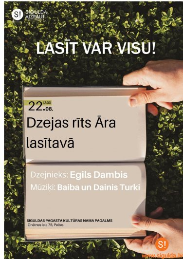 Sestdien, 22. augustā, plkst. 12.00 Siguldas pagasta Kultūras nama āra lasītavā jau trešo reizi norisināsies tikšanās ar dzejnieku. Šoreiz tikšanās būs ar Egilu Dambi. Par muzikālo noskaņu pasākumā rūpēsies grupa “Divas balsis” – mūziķi Baiba un Dainis Turki.