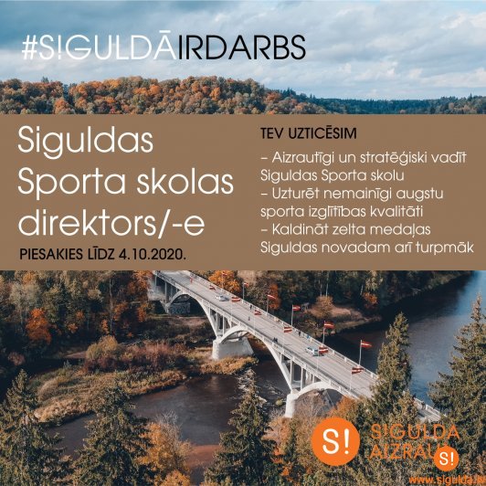 Izglītības jomas pilnveidošana ir viena no Siguldas novada attīstības prioritātēm. Siguldas Sporta skola ir profesionālās ievirzes izglītības iestāde, kuras mērķis ir nodrošināt augstu un noturīgu sporta izglītības kvalitāti, uz vispārējo fizisko sagatavotību un augstiem sportiskiem sasniegumiem vērstu bērnu un jauniešu sagatavošanu. Siguldas Sporta skolas audzēkņi katru gadu uzrāda augstus sasniegumus dažādos sporta veidos gan Latvijas, gan starptautiskā mērogā. Sporta skolai ir nepieciešams direktors/-e, kurš/-a nodrošinās Siguldas novada bērnu un jauniešu sporta izglītības stratēģisko attīstību, pilnveidos esošo izglītības programmu īstenošanu un veidos jaunas sporta izglītības programmas.