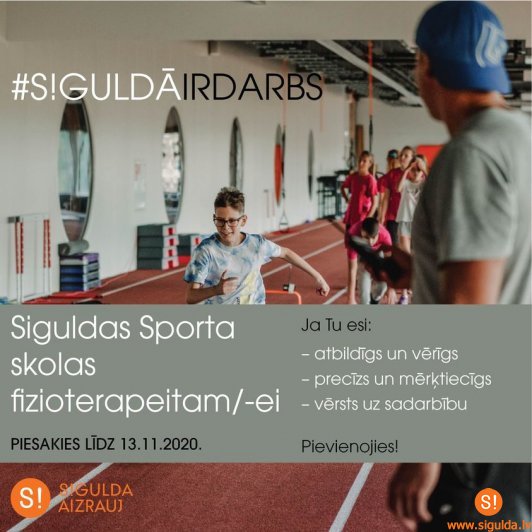 Atbalstot Siguldas Sporta skolas vecāku ierosinājumu piesaistīt fizioterapeitu jauno sportistu treniņprocesa uzraudzībai un uzlabošanai, pašvaldība izsludinājusi minētā speciālista vakanci. Fizioterapeits veiks novērojumus un skolēnu izmeklēšanu individuāli un treniņgrupās, izstrādājot slēdzienus un pēc nepieciešamības iesaistot papildu resursus un vecākus bērna veselības uzlabošanā. Plānots, ka speciālists darbu Siguldas Sporta skolā uzsāks novembra otrajā pusē.