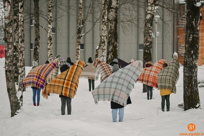 Siguldas tautas deju kolektīvu meitenes ziemas spelgonī lepni izrādījušas rokdarbnieču lakatus, īpašā fotosesijā atklājot to tautisko vērtību un daili.