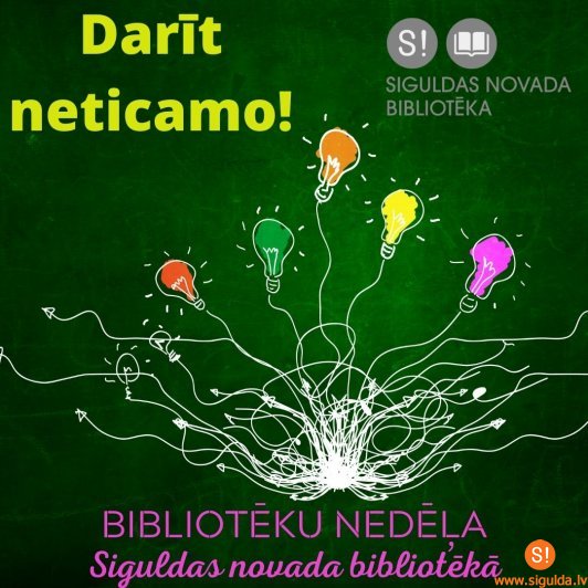 Ar aicinājumu darīt neticamo šogad no 19. līdz 25. aprīlim tiek atzīmēta Bibliotēku nedēļa. Tās laikā Siguldas novada bibliotēkas ar īpašām aktivitātēm sasniegs savus lasītājus, pievēršot uzmanību savai darbībai, kā arī bibliotēku un grāmatu nozīmei sabiedrībā.