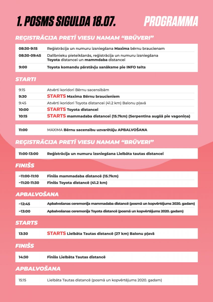 Tīmekļa vietnē www.velo.lv atvērta dalībnieku pieteikšanās. Ikvienam ir iespēja izvēlēties starp “Toyota”, “Lielbāta” tautas, vai “Mammadaba” veselības brauciena distancēm. Iedzīvotājiem ar