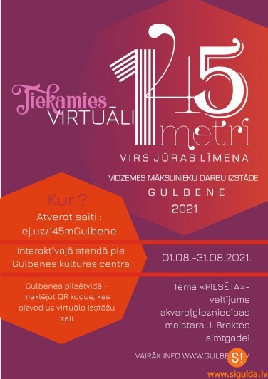 Jau kopš pagājušā gadsimta 80. gadiem tradicionāli Vidzemes mākslinieki apvienojas kopējā izstādē, kurā pie sevis māksliniekus pulcē kāda no Vidzemes pilsētām. 2021. gadā tā ir Gulbene – pilsēta, kas atrodas 145 metru augstumā virs jūras līmeņa, tāpēc arī izstādei zīmīgs nosaukums - “145 m virs jūras līmeņa”. Atbilstoši noteiktajiem piesardzības pasākumiem, šogad izstāde notiek virtuāli. Virtuālajā izstādē piedalās arī Siguldas novada mākslinieki, pārstāvot novadu. Izstāde apskatāma šeit.
