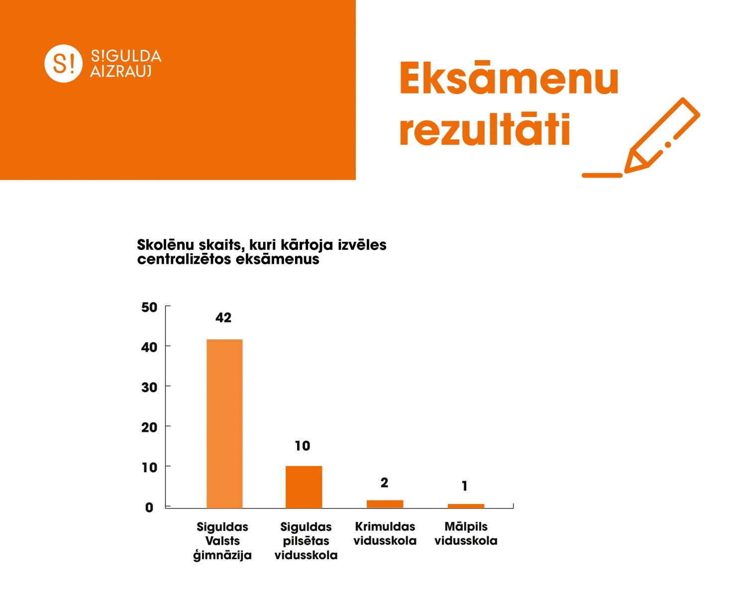 Priecājamies par Siguldas novada 12. klašu skolēnu augstajiem rezultātiem centralizētajos eksāmenos un vēlam neapstāties pie sasniegtā, bet tikpat veiksmīgi turpināt savas izglītības gaitas arī turpmāk!
