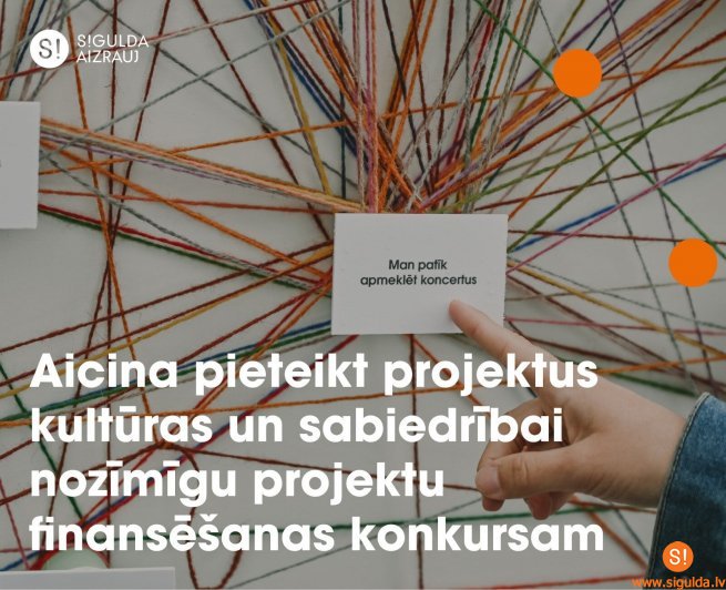 Siguldas novada kultūras un sabiedrībai nozīmīgu projektu finansēšanas konkursa laikā uz pašvaldības finansiālu atbalstu var pretendēt gan radošās darbnīcas un izstādes, koncerti un izrādes, gan informatīvi izglītojoši pasākumi un starpdisciplināras kultūras aktivitātes, kā arī citi nozīmīgi projekti, kurus 2022. gadā plānots realizēt Siguldas novadā.