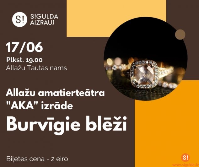 Šo piektdien, 17. jūnijā, plkst. 19.00 Allažu Tautas namā tiks izrādīta patiesa komēdija 2 cēlienos par krāpniekiem Francijā 20. gadsimtā “Burvīgie blēži”.