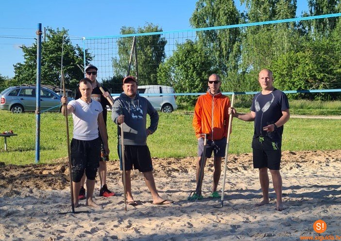 Gatavojoties Apkaimes svētkiem, vietējie volejbolisti sadarbībā ar Siguldas novada pašvaldību atjauno volejbola laukumu Peltēs.