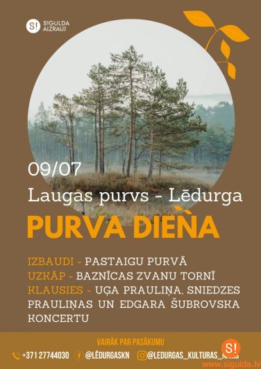 No plkst. 17.00 būs iespēja uzkāpt Lēdurgas Evaņģēliski luteriskās baznīcas zvanu tornī un apskatīt purva taku no putna lidojuma. Savukārt plkst. 19.00 Lēdurgas pagasta “Puķudruvās”, izskanēs Uģa Prauliņa, Sniedzes Prauliņas un Edgara Šubrovska koncerts.